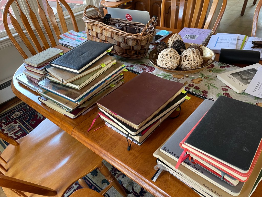 Instead of crafting what would surely become a respectable memoir this morning, I simply picked up the first journal in my spring 2023 series, and wrote a great big long thank you note to the lifelong friend I found between all these lines across so many pages, filling books, stacked in boxes.